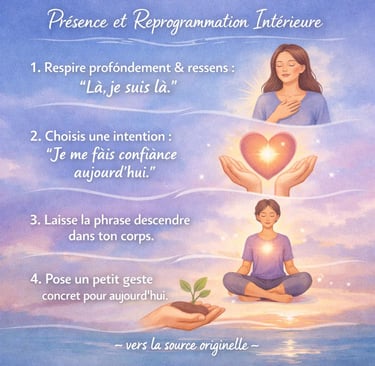 Enfin, la clé reste la présence à soi. Plus tu es connecté à ce que tu ressens dans l’instant, plus tu laisses partir naturellement ce qui ne te correspond plus. Le subconscient ne répond pas bien à la pression, mais il s’ouvre à une clarté bienveillante. En accueillant ton vécu sans lutte intérieure, tu crées un espace de sécurité. Et c’est dans cette sécurité que les changements profonds prennent racine