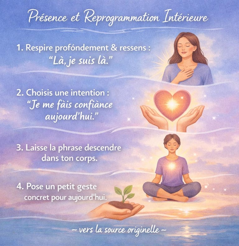 L’attention joue également un rôle essentiel. Ce que tu choisis d’alimenter intérieurement finit par devenir une habitude. Prendre le temps d’observer tes pensées sans te critiquer, puis ajuster doucement ton dialogue intérieur, constitue déjà une transformation. Il n’est pas nécessaire de combattre tes anciens schémas. Les reconnaître et décider de ne plus les suivre automatiquement ouvre naturellement une nouvelle voie.